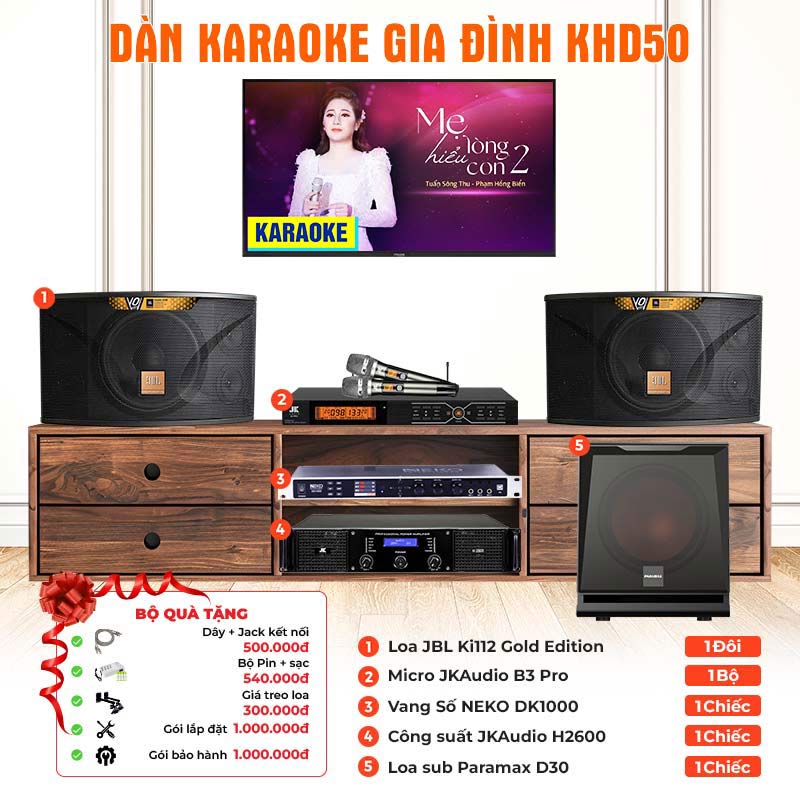 Đánh giá Dàn karaoke gia đình KHD50 (JBL Ki112 Gold Edition, Paramax D30, NEKO DK1000, JKAudio H2600, JKAudio B3 Pro)