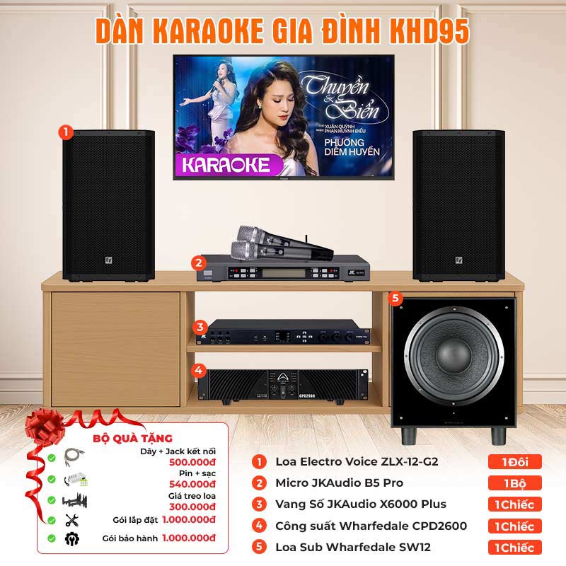 Dàn karaoke gia đình KHD95 được cấu thành bởi các thiết bị âm thanh karaoke chính hãng sau: