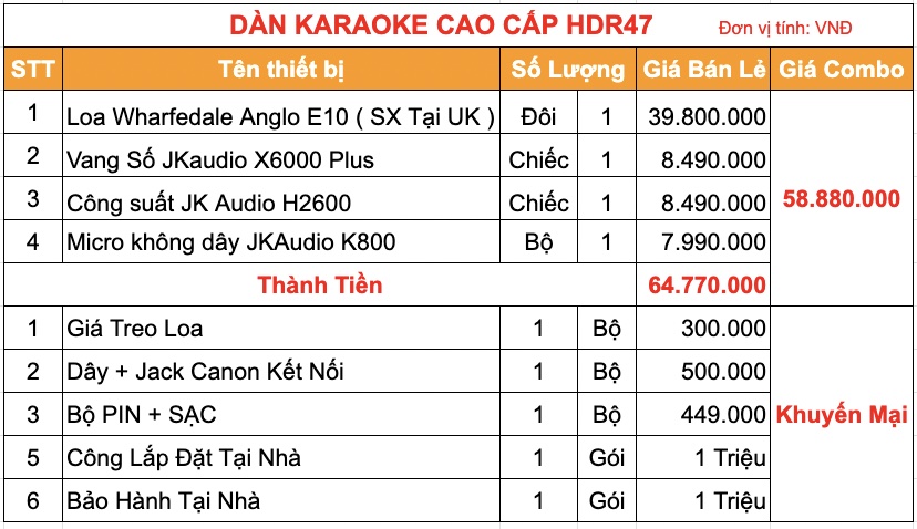Đánh giá Dàn Karaoke Cao Cấp HDR47 ( Whafedale Anglo E10, Công suất, Jkaudio X6000 Plus, K800 )