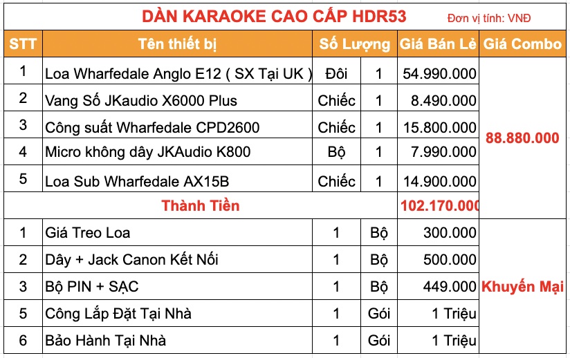 Dàn Karaoke Cao Cấp HDR53 ( Whafedale Anglo E12, Công suất, Jkaudio X6000 Plus, K800, Sub ) Dàn Karaoke Cao Cấp HDR53 ( Whafedale Anglo E12, Công suất, Jkaudio X6000 Plus, K800, Sub )