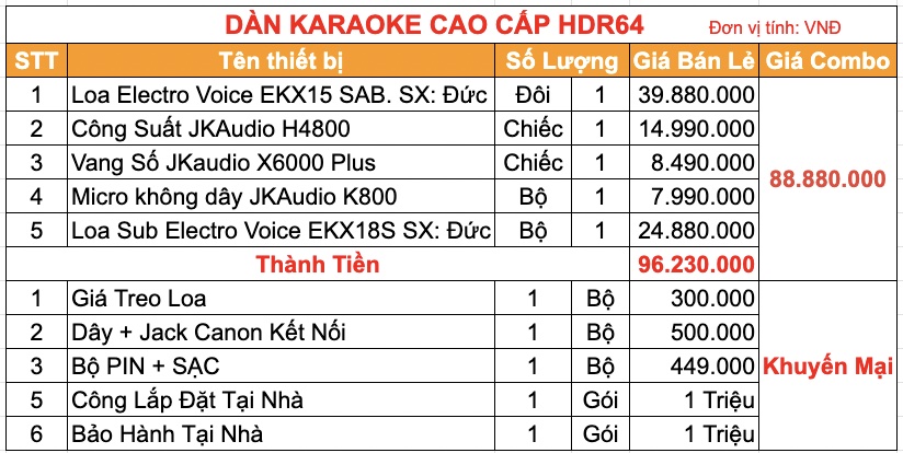 Đánh giá Dàn Karaoke Cao Cấp HDR64 ( EKX15, Sub KX18S, H4800, X6000 Plus, K800 )