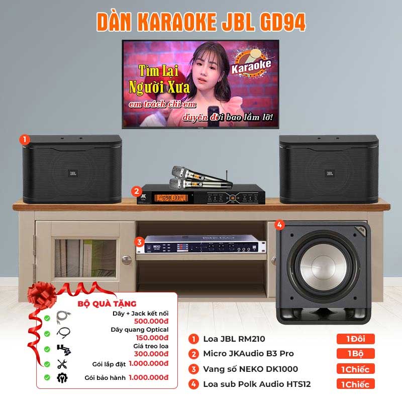 Dàn Karaoke JBL GD94 (JBL RM210, Neko DK1000, JKaudioB3 Pro, Polk Audio HTS12) Dàn Karaoke JBL GD94 (JBL RM210, Neko DK1000, JKaudioB3 Pro, Polk Audio HTS12)
