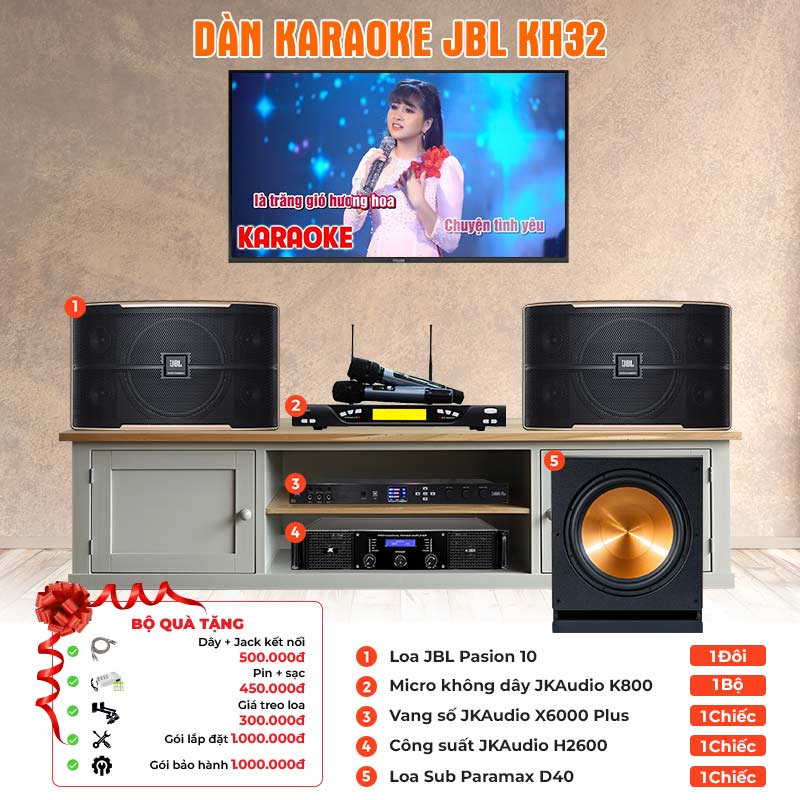 Đánh giá Dàn Karaoke JBL KH32 (Pasion 10, H2600, X6000 plus, K800, Sub Paramax D40)