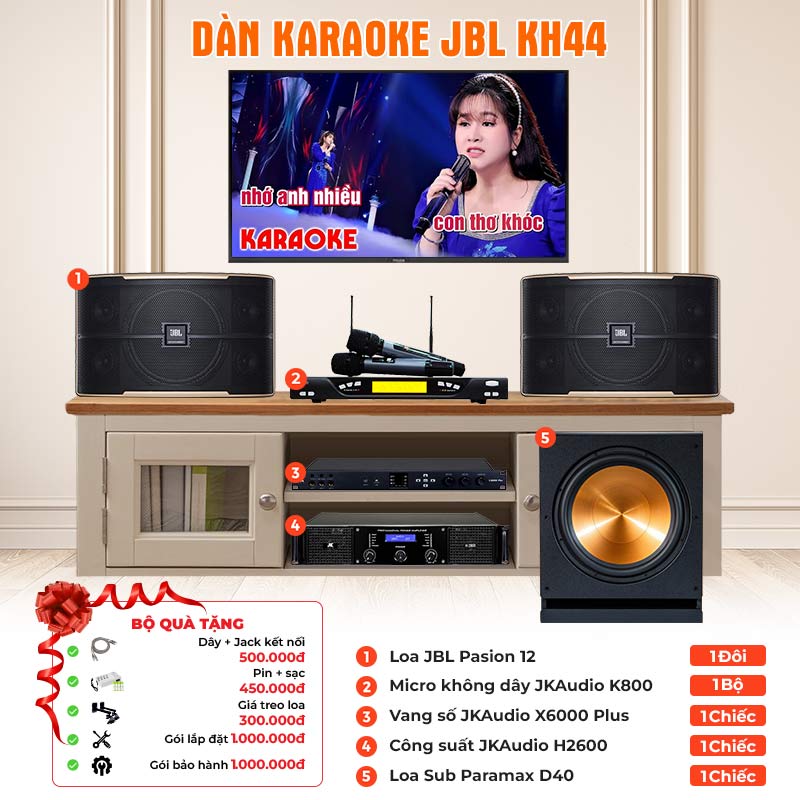 Dàn Karaoke JBL KH44 (JBL Pasion 12, H2600, X6000 Plus, K800, Sub Paramax D40) Dàn Karaoke JBL KH44 (JBL Pasion 12, H2600, X6000 Plus, K800, Sub Paramax D40)