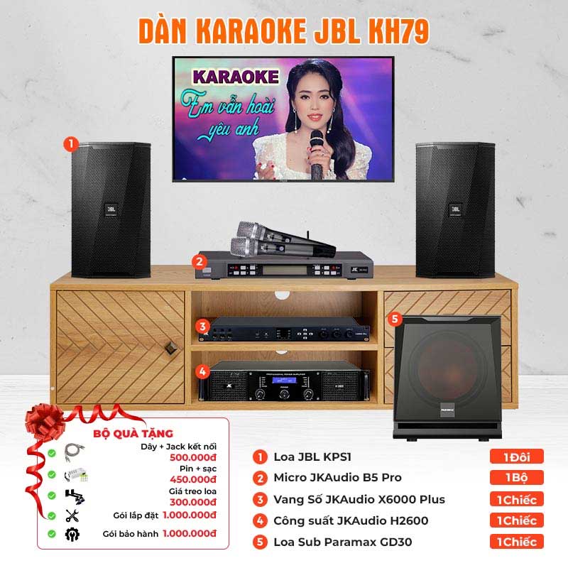 Dàn karaoke JBL KH79 (JBL KPS1, JKAudio H2600, JKAudio X6000 Plus, Paramax D30, JKAudio B5 Pro) Dàn karaoke JBL KH79 (JBL KPS1, JKAudio H2600, JKAudio X6000 Plus, Paramax D30, JKAudio B5 Pro)