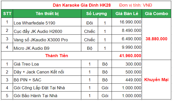 Đánh giá Dàn karaoke Wharfedale HK28 (Wharfedale 5190, Công suất, Vang số, Micro JKaudio B9)
