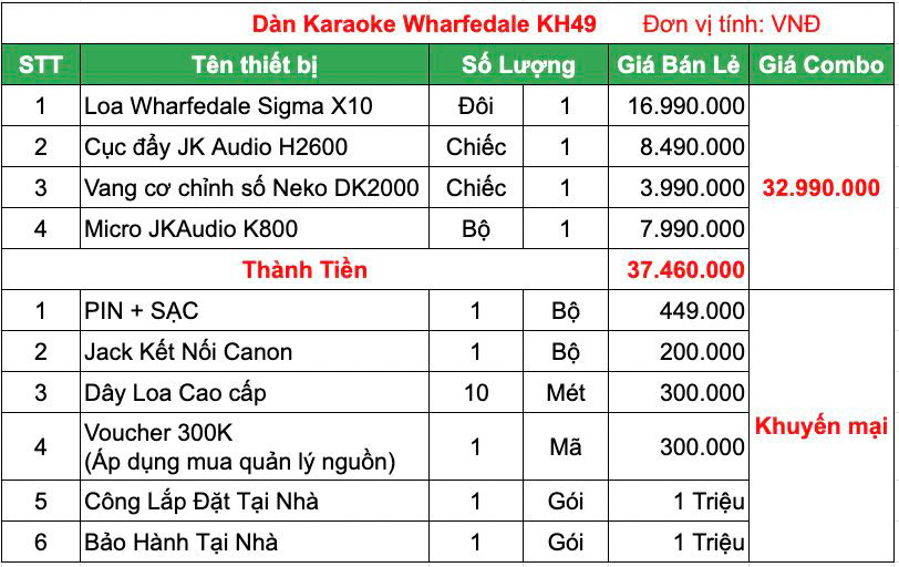 Với nhiều phân khúc giá karaoke cho quý khách có thể chọn lựa, dàn karaoke Wharfedale KH49 là một gợi ý của chúng tôi, hứa hẹn sẽ làm thỏa mãn đam mê ca hát của bạn. Cùng tìm hiểu xem bộ dàn này gồm những thiết bị gì nhé!