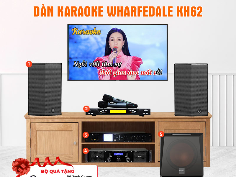 Dàn Karaoke Wharfedale KH62 là một bộ dàn karaoke gia đình cao cấp, nổi tiếng với chất lượng âm thanh tuyệt vời và thiết kế đẹp mắt. Bộ dàn bao gồm loa, cục đẩy, vang số, micro và loa sub, được phối ghép hài hòa và tinh tế, cho bạn trải nghiệm dàn karaoke gia đình chuẩn và thỏa sức thể hiện tài năng ca hát. Dàn karaoke này là sự lựa chọn hoàn hảo cho những ai yêu thích karaoke với âm thanh chất lượng cao và giá cả hợp lý.