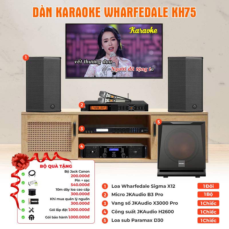 Dàn Karaoke Wharfedale KH75 có 5 thiết bị chính để tạo nên 1 bộ dàn hát karaoke hoàn hảo bao gồm: