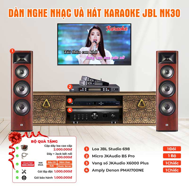 Dàn nghe nhạc và Hát karaoke JBL NK30 (JBL 698, Denon 1700Ne, B5 Pro, X6000 Plus) Dàn nghe nhạc và Hát karaoke JBL NK30 (JBL 698, Denon 1700Ne, B5 Pro, X6000 Plus)