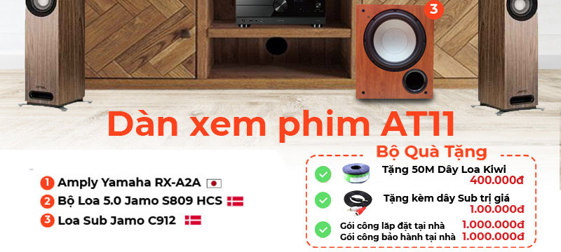 Nếu bạn đang tìm kiếm cho mình một Bộ dàn xem phim 5.1 vừa xem phim, vừa nghe nhạc chuyên nghiệp với âm thanh ấn tượng như ngoài rạp chiếu phim thì Dàn xem phim 5.1 Yamaha, Jamo AT11 là một sự lựa chọn không thể bỏ qua. Hiện bộ sản phẩm đang được bán với giá tốt nhất cùng nhiều ưu đãi hấp dẫn tại HDRADIO - Đơn vị Chuyên tư vấn, thiết kế, xây dựng hệ thống Dàn ân thanh Xem phim Chính hãng, chuyên nghiệp hàng đầu Việt Nam.