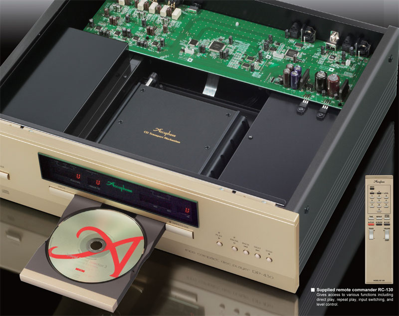 Đầu CD Accuphase DP430 có ổ đĩa có độ chính xác cao, được phát triển bởi Accuphase được tối ưu hóa để tái tạo CD, cùng với cơ chế tải đĩa siêu yên tĩnh và mượt mà đảm bảo khả năng đọc tín hiệu thuần túy ở mức cao nhất. Trong phần bộ xử lý, bộ chuyển đổi D / A loại MDS sử dụng bốn chip DAC được điều khiển song song và bộ khuếch đại bộ lọc có ANCC mới được phát triển (Mạch khử nhiễu và nhiễu biến dạng Accuphase).