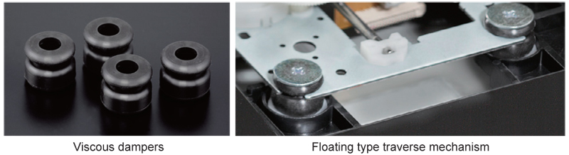 Đầu CD Accuphase DP430 được cách ly cơ học giữa cơ chế di chuyển ngang và ổ đĩa CD là được cung cấp bởi bộ giảm chấn nhớt loại silicon có hình dạng và chất liệu thành phần đã được tối ưu hóa cẩn thận.