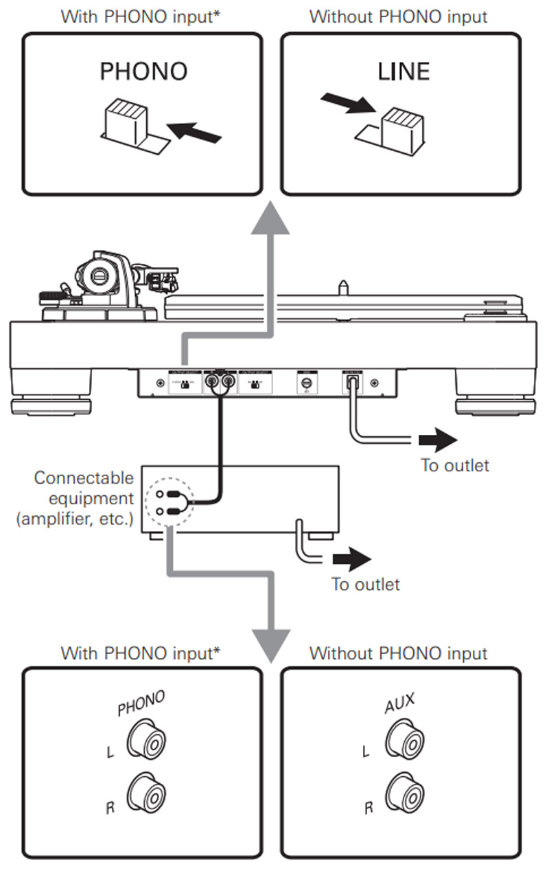 - Tích hợp bộ tiền khuếch đại phono có thể chuyển đổi với các chế độ phù hợp với hộp mực MM hoặc MC tùy chọn.