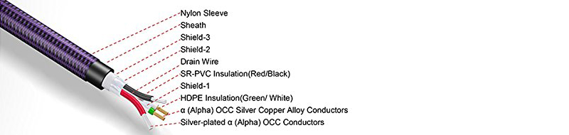 - Dây dẫn điện: Dây dẫn α (Alpha) OCC 24AWG mạ bạc
