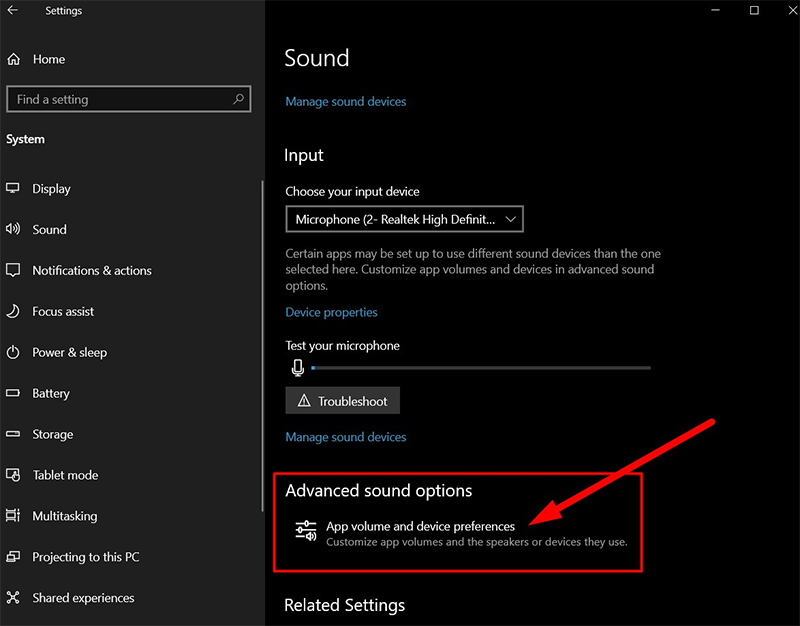 Lưu ý: Tính năng App volume and device preferences chỉ có thể sử dụng trên Windows 10 phiển bản tháng 4/2018 trở về sau. Âm thanh từ mỗi nguồn khác nhau sẽ được phát trên những thiết bị khác nhau.