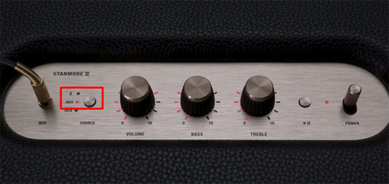 Nhấn nút chuyển chế độ trên loa marshall sao cho đèn tín hiệu AUX sáng đèn.