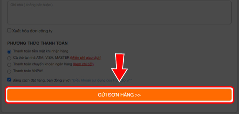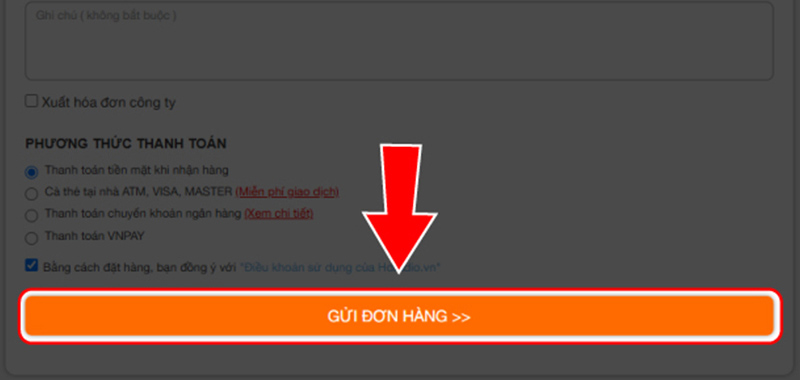 Sau khi bạn đã điền đầy đủ thông tin, và chọn phương thức thanh toán nhấn GỬI ĐƠN HÀNG >> để hoàn thành.