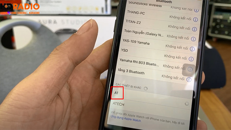Lưu ý: là bắt bluetooth của chiếc đầu thu chứ không phải bắt bluetooth của chiếc loa marshall