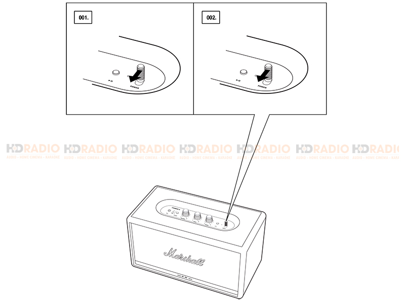 Bước 1: Kết nối nguồn điện và mở loa marshall