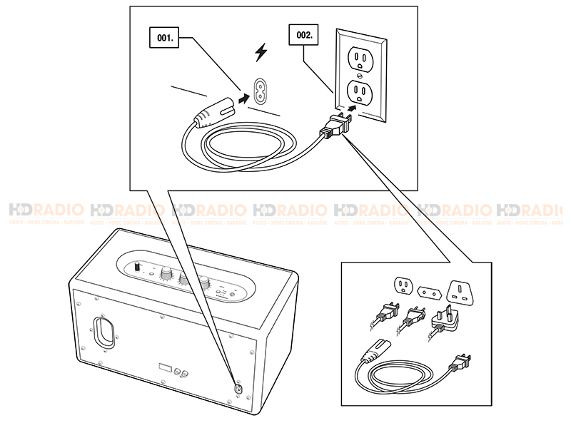 Kết nối nguồn điện của loa marshall của thông qua dây nguồn đi kèm trên loa