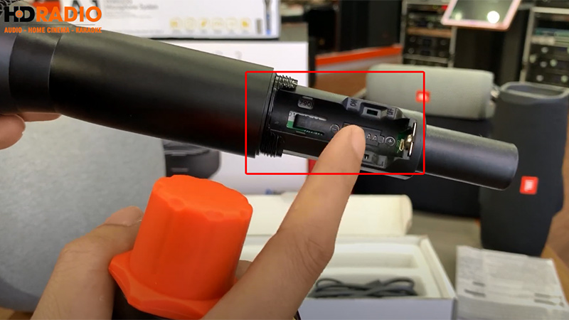 Bước 2: Cấp nguồn cho tay micro và đầu thu