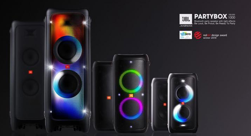 Ba mẫu sản phẩm đạt giải thưởng thiết kế ấn tượng - Reddot Design Award Winner 20219 bao gồm: JBL Party Box 1000, JBL Party Box 300, JBL Party Box 100. (JBL partybox 200 là sản phẩm mới được thiết kế tháng 7 năm 2019, sau khi đã được trao giải thưởng trên)