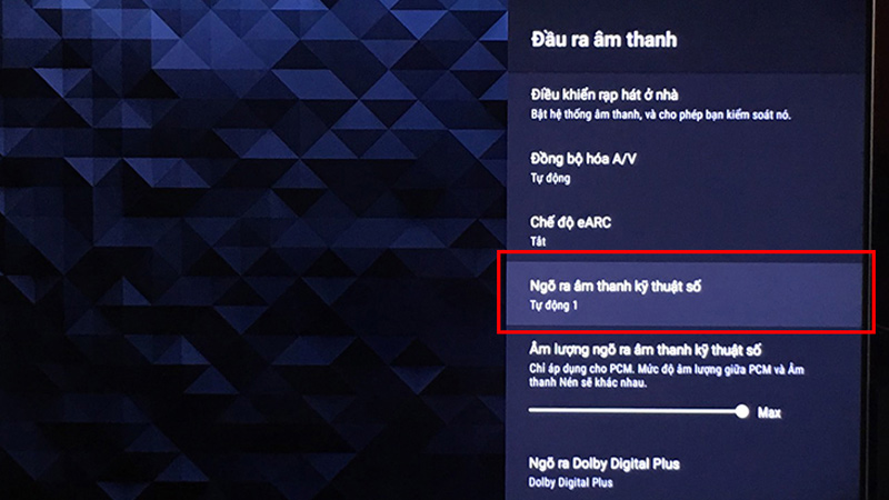 - Tùy theo mẫu tivi, có thể bạn cần chuyển cài đặt chuyển cài đặt ngõ ra âm thanh từ Tivi sang hệ thống âm thanh. chuyển cài đặt một cách đơn giản trên tivi bằng cách: Vào mục cài đăt >>> Hiển thị & Âm thanh >>> Đầu ra âm thanh >>> Ngõ ra âm thanh kỹ thuật số