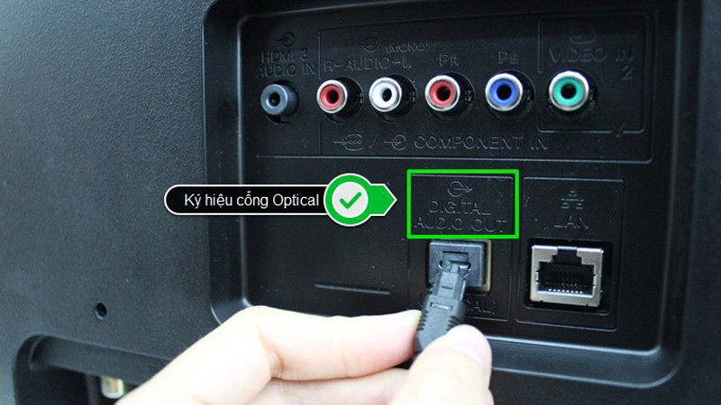 Bước 2: Cắm đầu dây quang còn lại vào cổng có ký hiệu DIGITAL AUDIO OUT trên Tivi