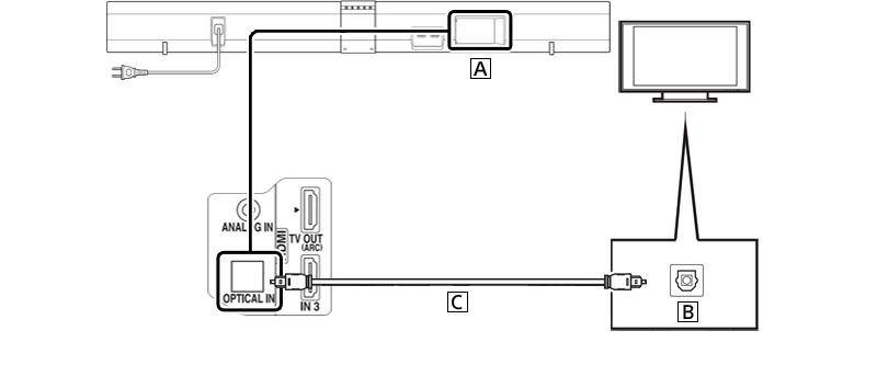 Bước 1: Cắm một đầu Dây quang vào cổng có ký hiệu OPTICAL-IN trên loa soundbar