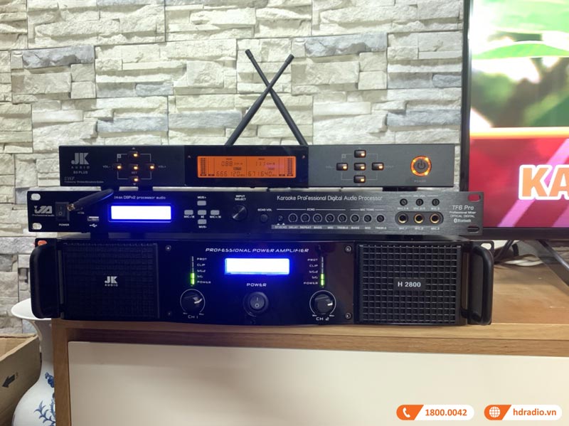 Lắp bộ âm thanh anh Dũng ở Hoàng Mai, Hà Nội (Loa Wharfedale 5190, Công Suất JK H2800, Vang cơ JA TF6 Pro, MicJK B5 Plus)