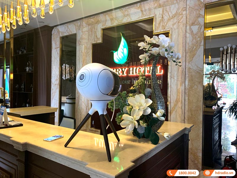 Đây là bộ loa bluetooth cao cấp nghe nhạc đỉnh cao, tiên tiến nhất hiện nay với âm thanh đẳng cấp cùng khả năng kết nối đa dạng với một thiết kế bắt mắt, sang trong làm tôn lên vẻ đẹp của không gian phòng lễ tân Khách sạn của anh Long. Mời các bạn cùng HDRadio tìm hiểu về cặp loa bluetooth này, cũng như chiêm ngưỡng vẻ đẹp cận cảnh của chúng trong trong không gian phòng lễ tân khách sạn của anh Long