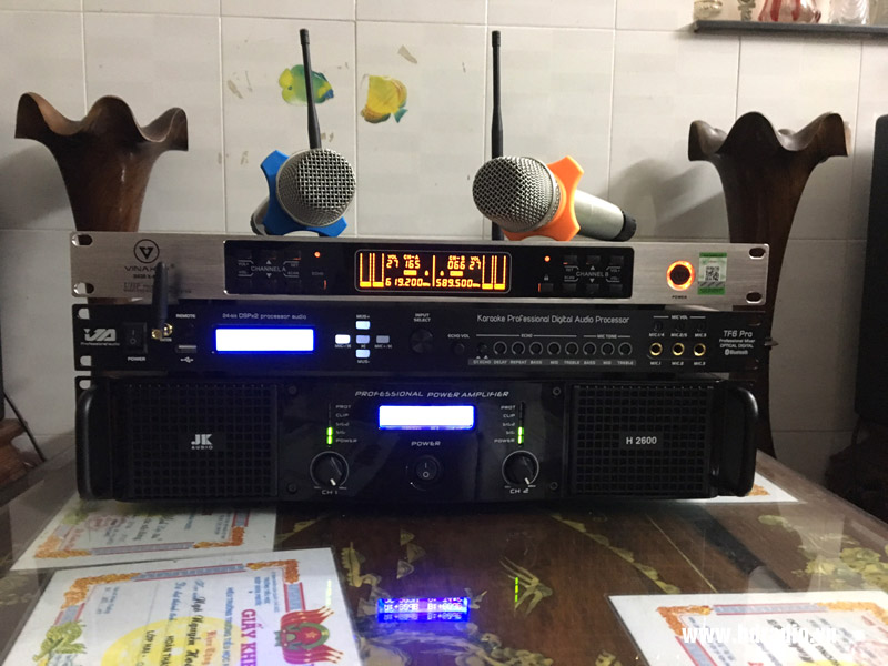 Lắp dàn karaoke anh Hải quận Thủ Đức, Hồ Chí Minh (Loa JBL Pasion 12, Cục công suất JKAudio H2600, Vang cơ JA TF6 Pro, Micro không dây VinaKTV S600X Max)