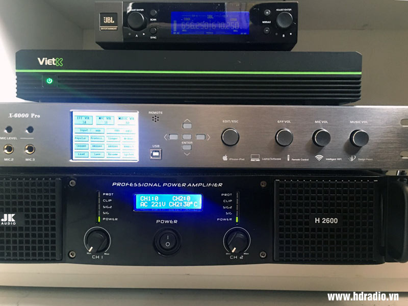 Lắp dàn karaoke anh Nam ở quận 9, Hồ Chí Minh (Loa JBL Ki312, Cục công suất JKAudio H2600, Micro không dây JBL VM300, Vang số JKaudio X6000 Pro, Loa Sub Wharfedale SW12, Đầu ViệtK Pro 4TB)