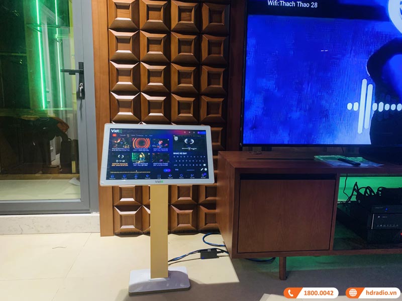 Lắp dàn karaoke cao cấp 245tr anh Cường tại Vinhome GreenBay, Từ Liêm, HN (Vang số JK X9900 Pro, Mic JBL VM300, Quản lý nguồn N608, Đầu ViệtK Plus 4TB, Màn cảm ứng VietK 22, Sub Wharfedale Delta X18B, Loa Wharfedale ANGLO E12, Đẩy Wharfedale CPD3600)