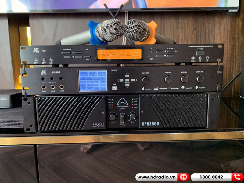 Lắp dàn karaoke cao cấp chị Hằng ở Thanh Xuân, Hà Nội (Loa WH12 NEO, Cục công suất Wharfedale CPD2600, Vang số JKaudio X8000, Micro JKAudio B9)