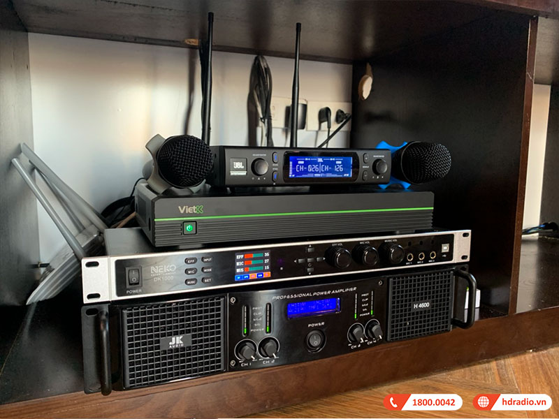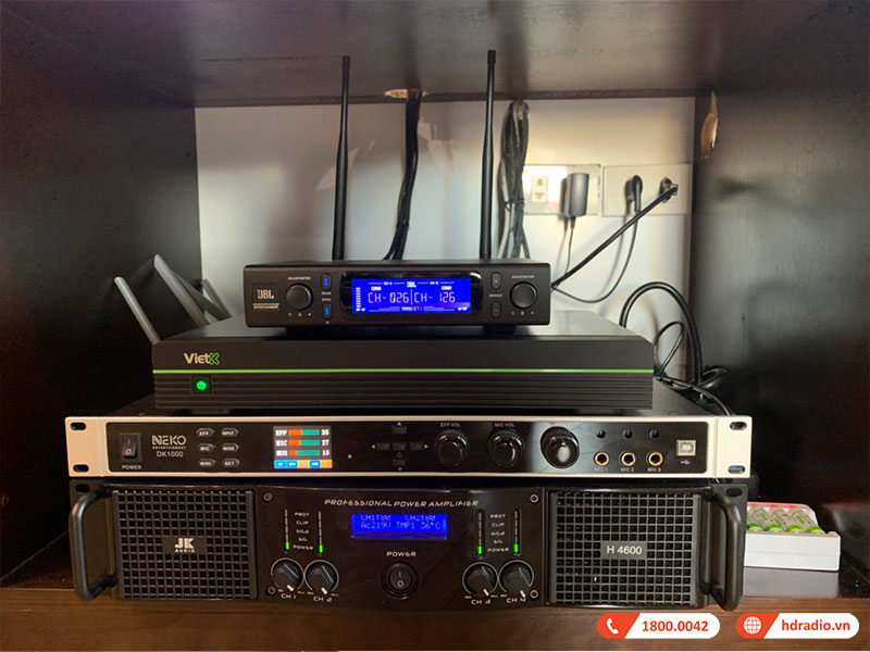 Trọn bộ hệ thống âm thanh mà anh Tuấn đã lựa chọn được bao gồm các thiết bị âm thanh karaoke cùng với chiếc loa bluetooth JBL có thể hát karaoke tiện lợi đi kèm. Toàn bộ dàn karaoke này đã được đội ngũ kỹ thuật viên của HDRadio setup hoàn chỉnh, bàn giao cực nhanh, hướng dẫn sử dụng tận tình chu đáo, cực kỳ phù hợp với không gian phòng đồng thời đáp ứng tốt nhu cầu ca hát chuyên nghiệp tại gia của anh Tuấn. Cùng khám phá chi tiết xem bộ dàn nghe nhạc và hát karaoke này bao gồm những thiết bị gì nhé!