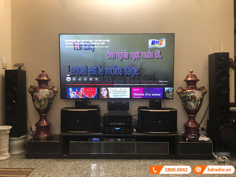 Dàn Karaoke này đã được anh Việt lựa chọn bao gồm các Thiết bị âm thanh karaoke và loa nghe nhạc JBL, Toàn bộ dàn âm thanh đã được đội ngũ kỹ thuật viên của HDRadio bàn giao, setup hoàn chỉnh nhằm phù hợp với không gian giải trí mang đến những trải nghiệm ca hát vô cùng chuyên nghiệp và hướng dẫn vô cùng tận tình, chu đáo. Hãy cùng đi khám phá dàn âm thanh này bao gồm những thiết bị nào ngay nhé!