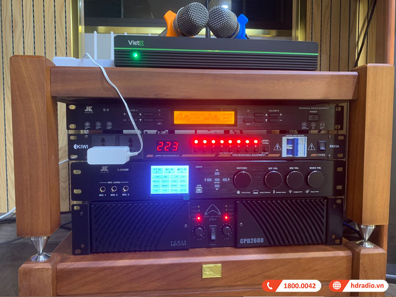 Đây được xem là một trong những hệ thống âm thanh karaoke hoàn chỉnh, chuyên nghiệp nhất, phối ghép và thiết kế bởi những thiết bị chính hãng đến từ nhiều thương hiệu đình đám như Wharfedale, JKaudio, VietK - tự tin mang đến cho anh cùng gia đình những giây phút ca hát, thưởng thức âm nhạc tuyệt vời nhất!