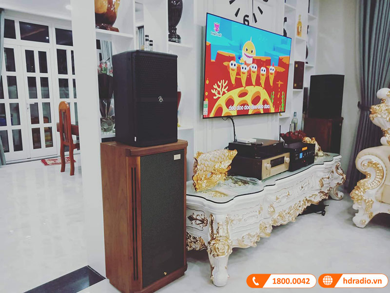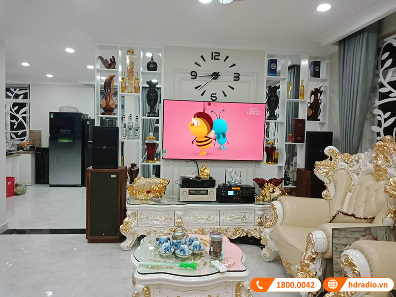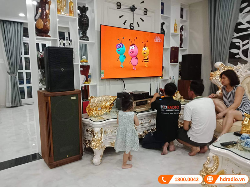 Được thiết kế, lắp đặt dựa trên sự tính toán cẩn thận và kỹ lưỡng bởi đội ngũ kỹ thuật viên của HDRADIO đã setup hoàn hảo, dàn âm thanh karaoke gia đình này rất vừa vặn với không gian phòng khách cũng như đáp ứng được trọn vẹn các yêu cầu về âm thanh, nhu cầu nghe nhạc, ca hát tại gia của anh Thắng. Hãy cùng chúng tôi khám phá chi tiết xem bộ dàn karaoke này bao gồm những thiết bị gì nhé!