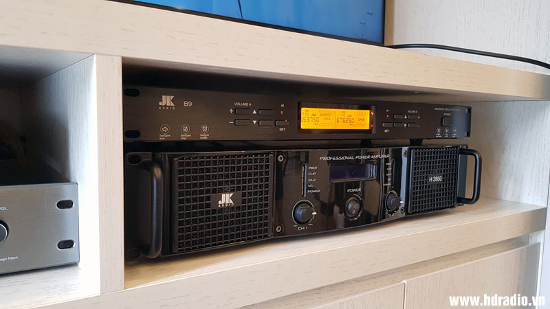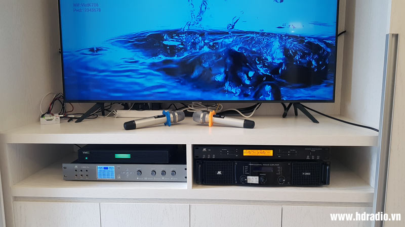 Lắp dàn karaoke chị Nhật An ở Tây Hồ, Hà Nội (Loa Wharfedale 5190, Cục công suất JKAudio H2800, Vang số JKaudio X6000 Pro, Micro không dây JKAudio B9, Đầu ViệtK 4K Plus 4TB, Loa sub Definitive Technology ProSub 1000)