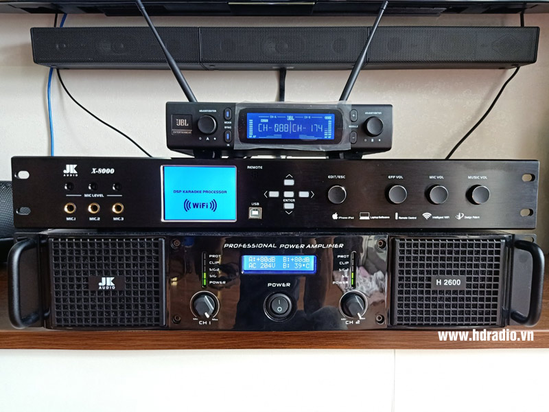 Lắp dàn karaoke cho anh Công ở Quận 9, HCM (Loa JBL KPS1, Cục công suất JKAudio H2600, Vang số JKaudio X8000, Micro JBL VM300)