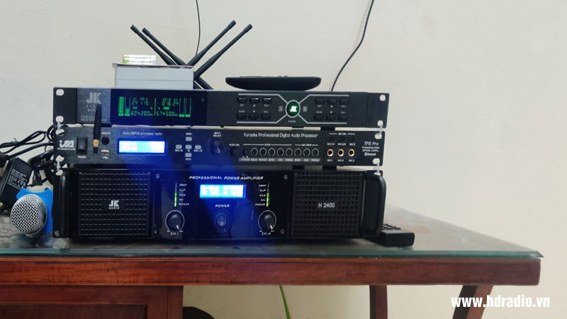 Lắp dàn karaoke cho anh Thắng ở Phú Xuyên, HN (Loa Audiofrog M10F, Cục công suất JKAudio H2400, Vang cơ JA TF6 Pro, Loa SUB PARAMAX 1000 New, Micro không dây JKAudio B3 Plus)