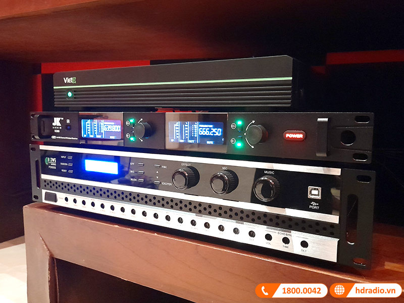 Không những đáp ứng tốt những chuẩn mực về âm thanh mà cô Thu mong muốn mà bộ dàn karaoke này còn cực kỳ phù hợp với không gian gia đình anh, được đội ngũ kỹ thuật viên của HDRadio setup, căn chỉnh một cách chỉnh chu, vừa vặn nhất. Cùng khám phá chi tiết xem hệ thống âm thanh karaoke này bao gồm những thiết bị gì nhé!