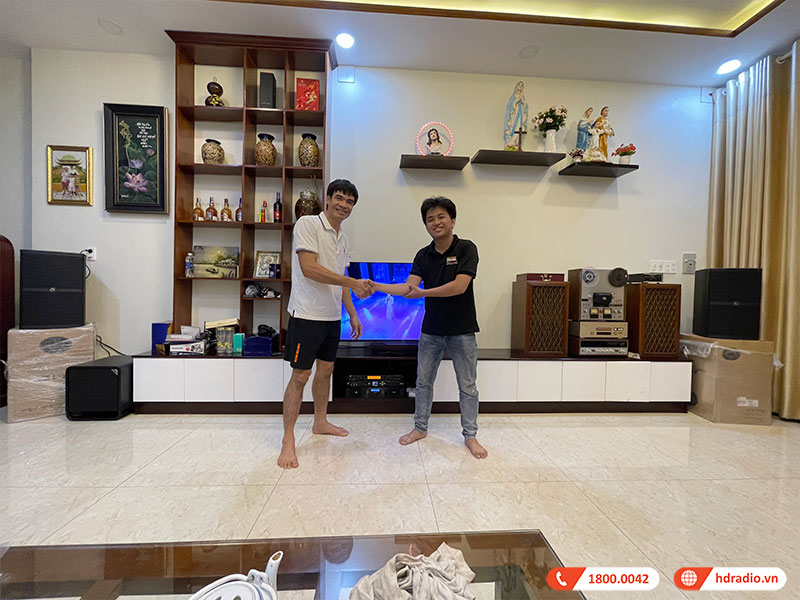 Không những đáp ứng tốt những chuẩn mực về âm thanh mà anh Dũng đã mong muốn, bộ dàn karaoke này còn cực kỳ phù hợp với không gian gia đình anh, được đội ngũ kỹ thuật viên của HDRadio setup, căn chỉnh một cách chỉnh chu, vừa vặn nhất. Cùng khám phá chi tiết xem hệ thống âm thanh karaoke này bao gồm những thiết bị gì nhé!