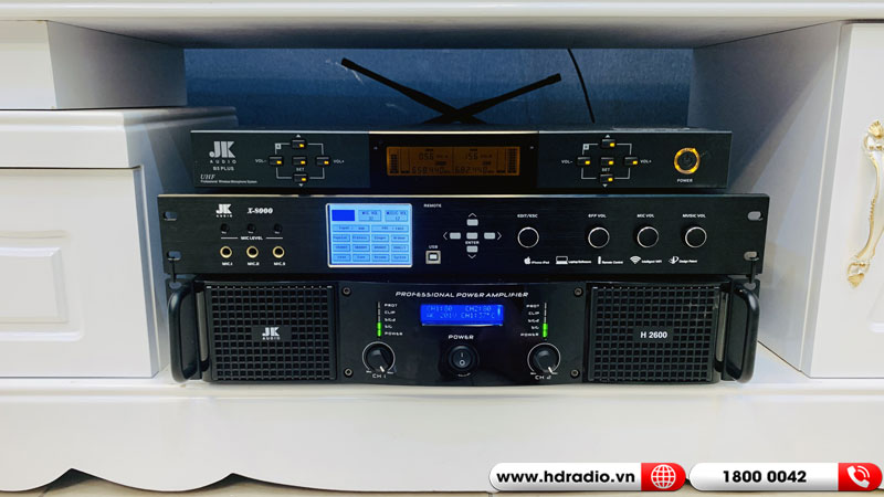 Lắp dàn karaoke JBL chị Trang ở Hoàng Mai, Hà Nội (Loa JBL Pasion 12, Đẩy JKaudio H2600, Vang số JKaudio X8000, Micro JKAudio B5 Plus)