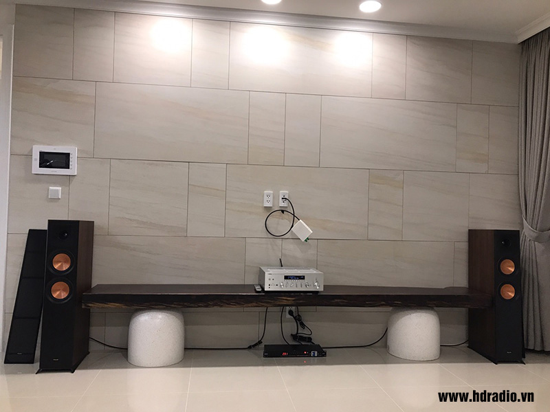 Lắp dàn nghe nhạc hay cho anh Việt ở Cầu Giấy, Hà Nội (Loa Klipsch RP6000F, Amply Yamaha R N803, Quản lý nguồn KIWI S803A)