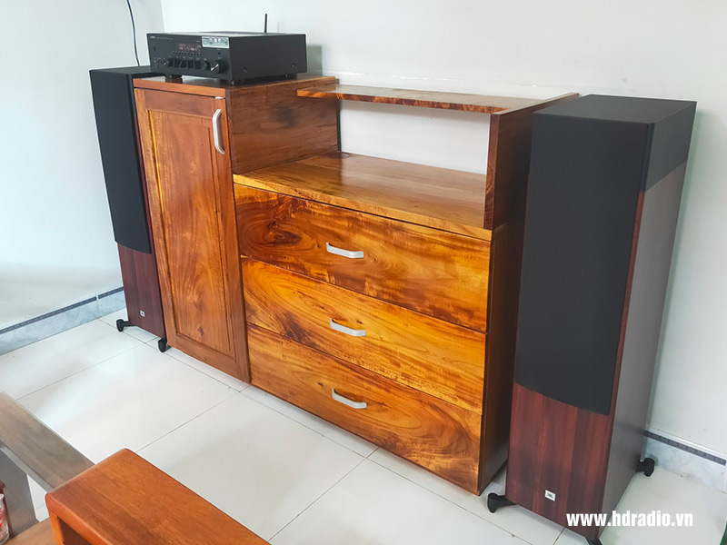 • Loa đứng có thiết kế màu nâu gỗ cực đẹp với loa màu đen phù hợp với không gian phòng khách của gia đình anh huỳnh