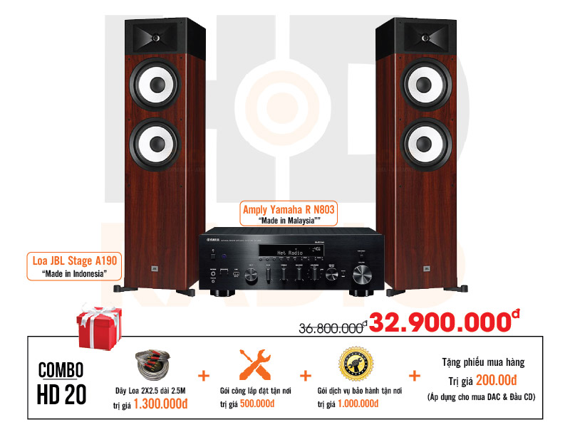 Đây là Dàn nghe nhạc JBL cực hay HD20 có tổng trị giá chưa đến 33 triệu cùng nhiều ưu đãi khuyến mại tại HDRadio. Hơn thế nhằm giúp đỡ quý khách hàng có thể lắp đặt hệ thông dàn nghe nhạc cao cấp này mà không phải tốn thêm bất kỳ chi phí nào, bên phía HDRadio còn hỗ trợ khuyến mại đi kèm (hoàn toàn miễn phí) khi mua sản phẩm như sau:
