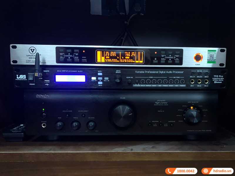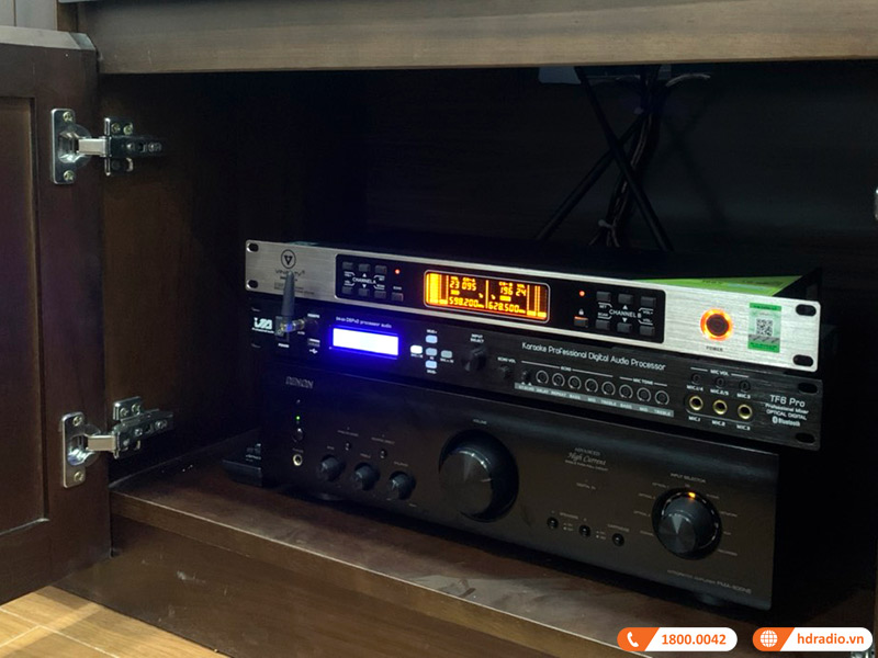 Tiếp tục là một dàn nghe nhạc và hát karaoke chất lượng nữa được HDRadio lắp đặt cho anh Hiền ở Đống Đa, Hà Nội với các sản phẩm chính hãng đến từ các thương hiệu nổi tiếng như: JBL (Mỹ), DENON (Nhật Bản), VinaKTV (Việt Nam) bao gồm: Amply Denon PMA 800NEJBL STAGE A190Vang cơ JA TF6 ProMicro không dây VinaKTV S600X Max cho âm thanh cực kỳ chất lượng, với khả năng nghe nhạc, hát karaoke cực kỳ hoàn hảo.